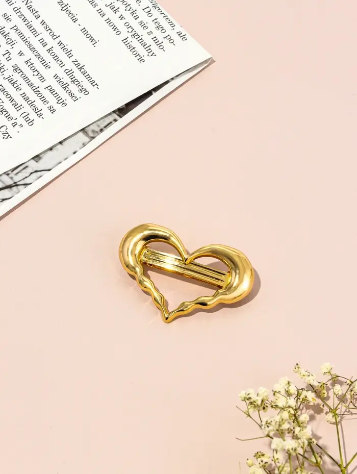 - Золотистый цвет и лаконичный дизайн: Покрытие под золото добавляет образу нотку благородства и легко сочетается с любой палитрой в одежде. Форма сердца — нежный акцент, который заметят окружающие.
