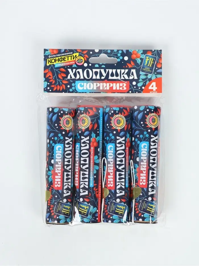 Хлопушка пиротехническая «Сюрприз» с предсказанием, фольга, 4 шт