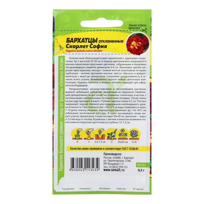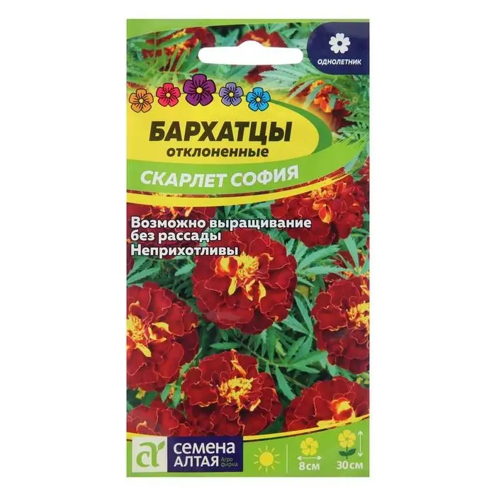 Семена цветов Бархатцы "Скарлет София", махровые, Сем. Алт, ц/п, 0,2 г