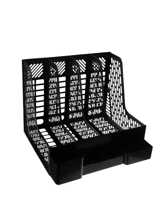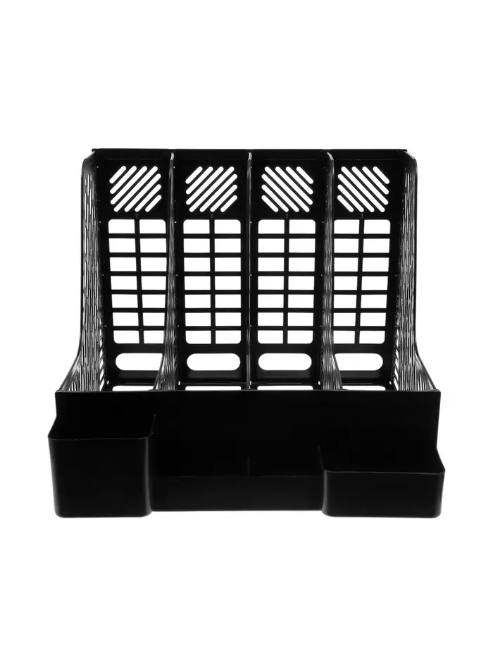 Лоток для бумаг Calligrata с отделениями для пишущих принадлежностей, вертикальный, 4 отделения, чёрный