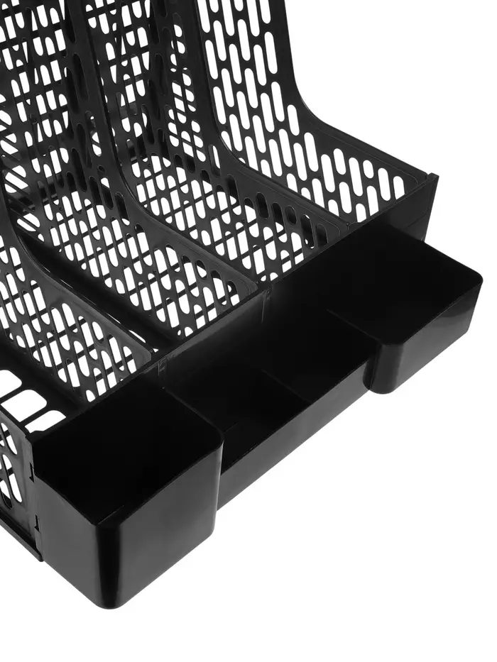 Лоток для бумаг горизонтальный, металлическая сетка, 3 отделения, чёрный