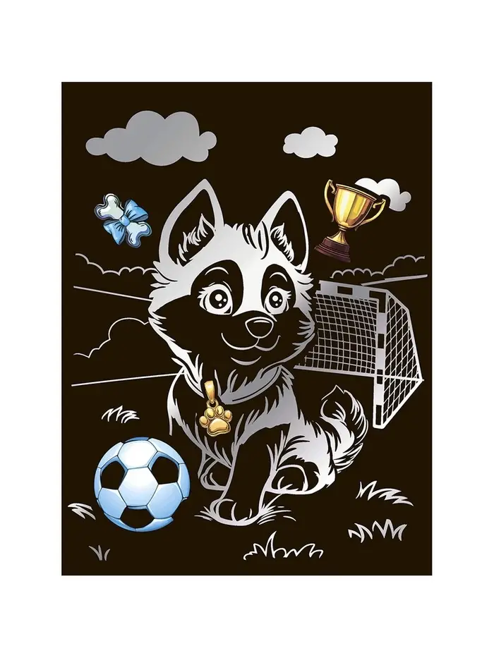 Гравюра 18*24 "Хаски-футболист" (серебро) Гр-772