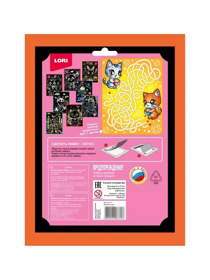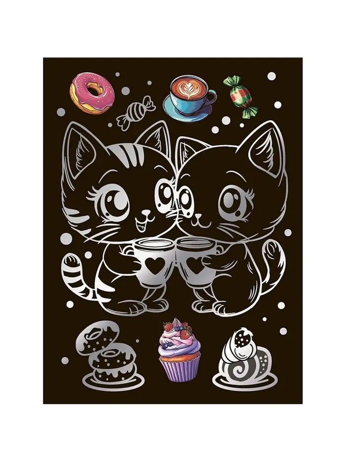 Гравюра 18*24 "Чаепитие котят" (серебро) Гр-773