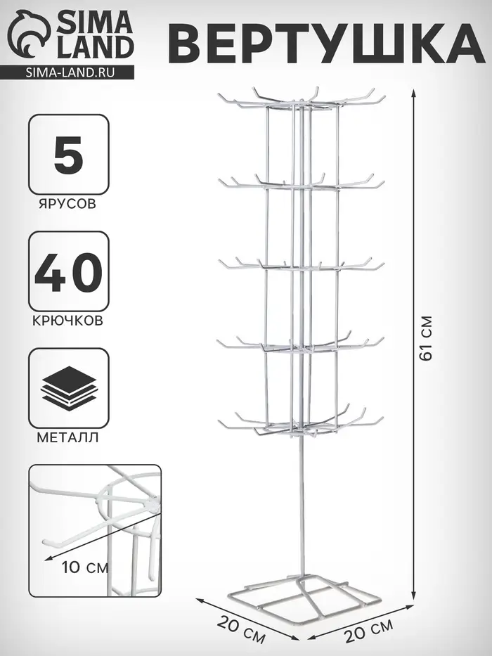 Вертушка, 5 ярусов по 8 крючков, 20×20×61 см, белая