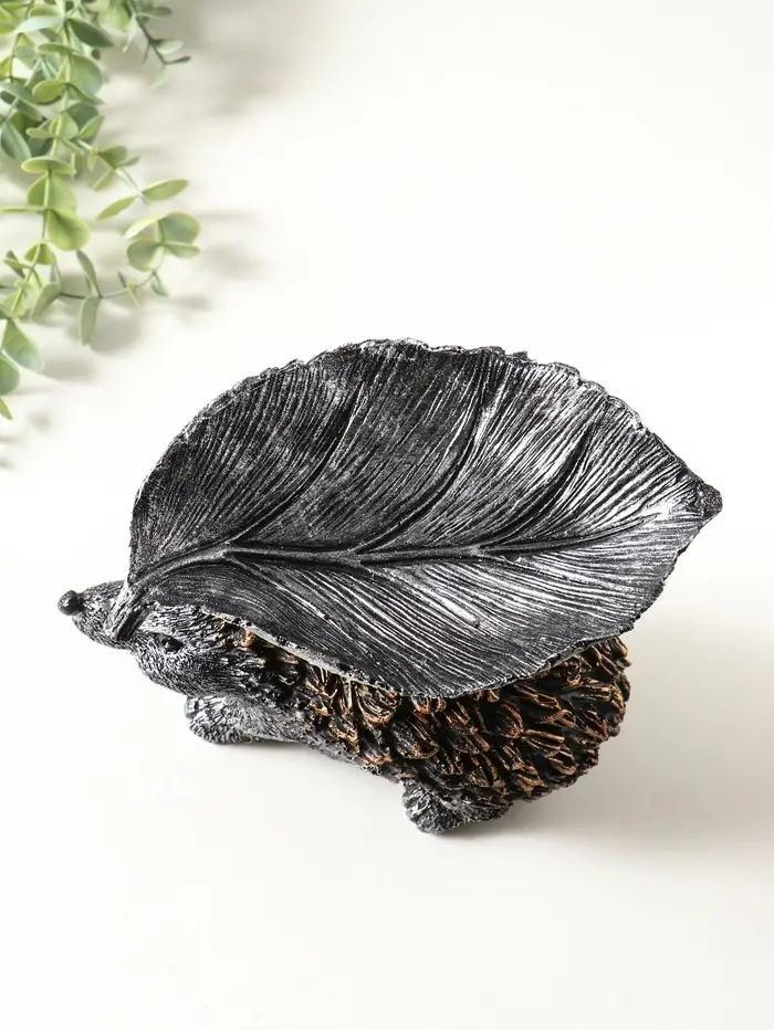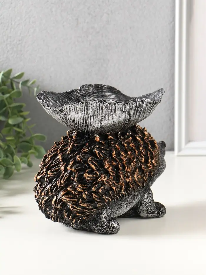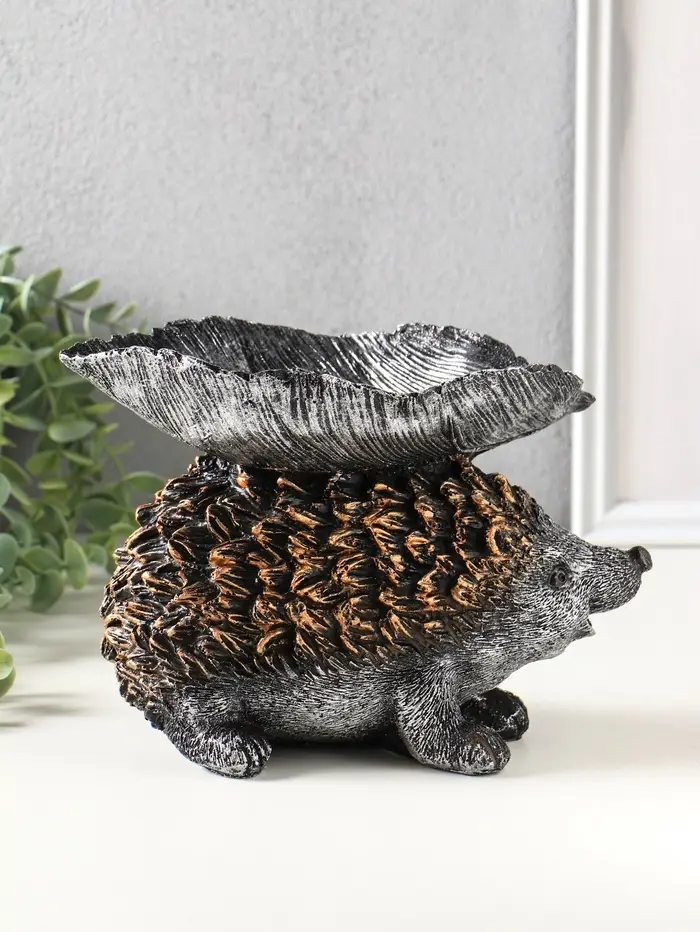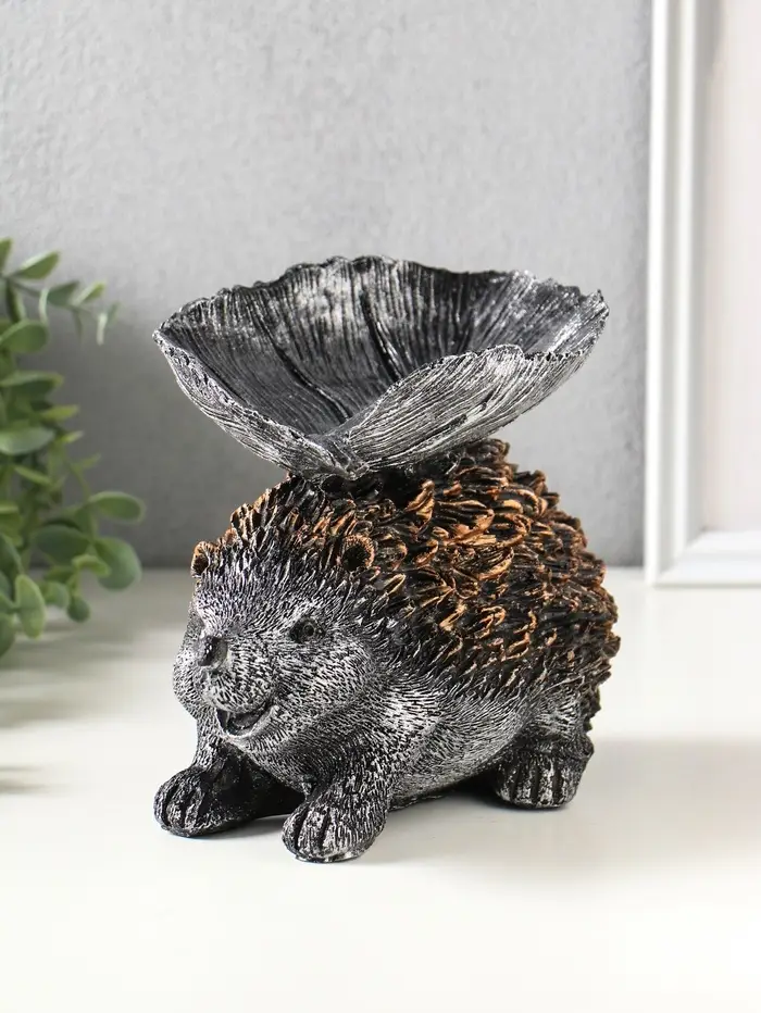 Фигура с подставкой для мелочей "Ёжик с листом" 15х21х13 см, серебро с бронзой