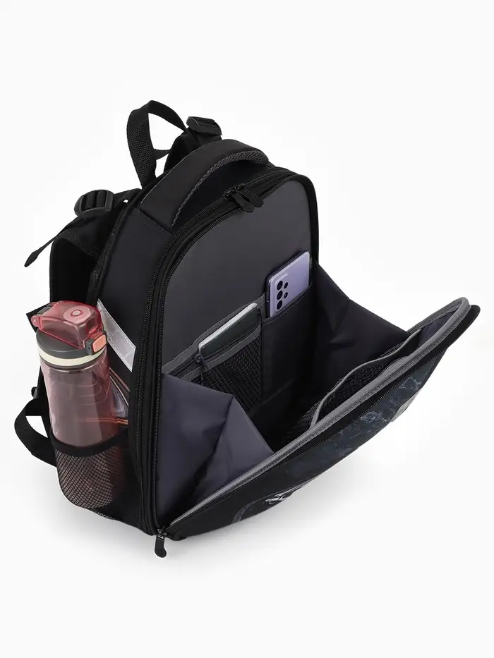 Этот школьный рюкзак для мальчика создан для ежедневных приключений от дома до школы и обратно. Его эргономичная каркасная конструкция с жёсткой спинкой бережно поддерживает осанку юного ученика, равномерно распределяя вес учебников и тетрадей. Стильный дизайн с динамичным принтом делает его верным спутником для ребят 1-5 классов.