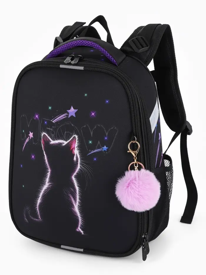 Этот школьный рюкзак для девочек создан, чтобы каждый учебный день начинался с улыбки. Удобная каркасная конструкция с жёсткой спинкой повторяет естественные изгибы, бережно распределяя вес и помогая сохранять правильную осанку. Два просторных отделения вместят всё необходимое для учёбы с 1 по 5 класс, а милый рисунок с котёнком станет верным спутником в школьных приключениях.