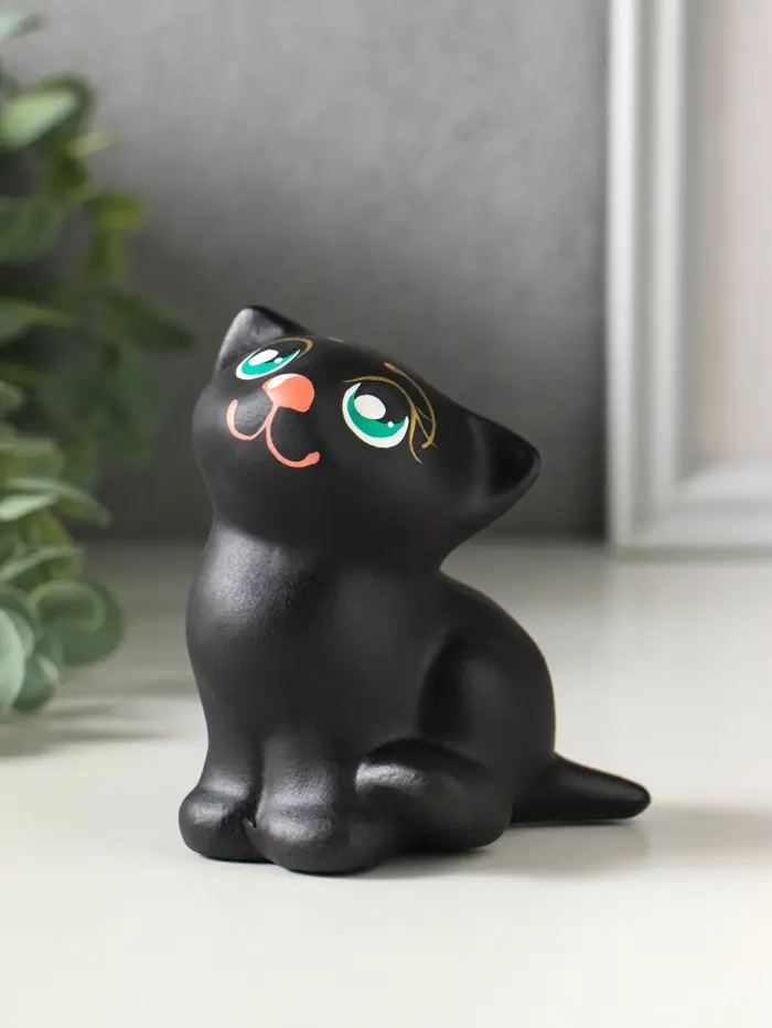 Эта керамическая фигурка котёнка — чёрное изящество, которое привносит в дом уют и тихую радость. Компактный размер делает его универсальным акцентом для полки, рабочего стола или каминной доски. Гладкая, приятная на ощупь керамика хранит тепло рук и создаёт ощущение умиротворения.