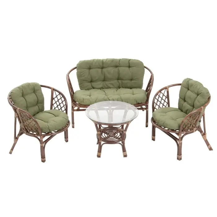 Набор садовой мебели "Bagama": 2 кресла, 1 диван, 1 стол, ротанг тёмный, подушки зелёные