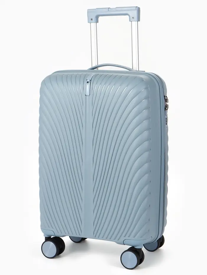 Этот голубой чемодан на колёсах — ваш надёжный спутник в коротких поездках и командировках. Его компактный размер 20 дюймов соответствует стандартам ручной клади большинства авиакомпаний, поэтому вы проходите на посадку без ожидания у стойки регистрации. Лёгкий и прочный корпус из поликарбоната защищает вещи, а четыре поворотных колеса обеспечивают манёвренность в людных аэропортах и на вокзалах.
