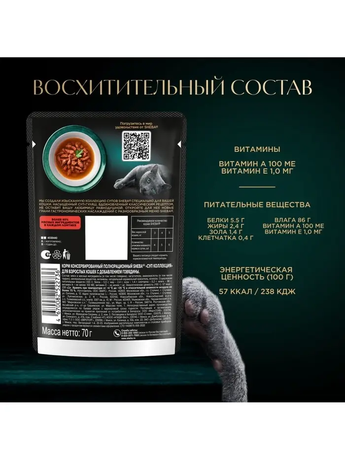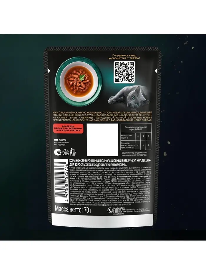 Влажный корм Sheba «Суп Коллекция» для взрослых кошек,суп, говядина, 70 г