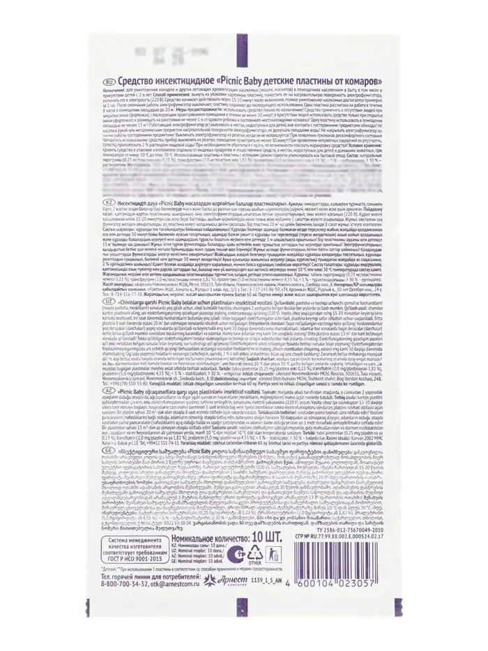 - Специально для детей: пластины Picnic Baby разработаны с учетом особенностей детского организма. Они не содержат резких запахов и отпугивающих веществ, безопасны для использования в детских комнатах.