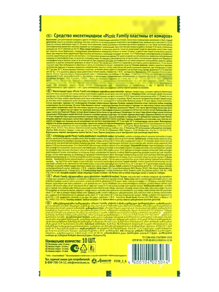 - Экономичная упаковка 10 штук: комплекта из 10 пластин хватит на 10 ночей спокойного сна. Удобно использовать в течение всего сезона активности комаров.