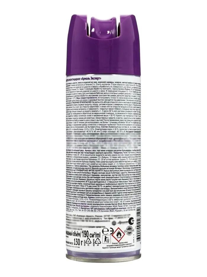 - Удобный аэрозольный формат: распылитель позволяет легко обрабатывать любые поверхности - полки шкафов, ковры, мягкую мебель, щели и труднодоступные места.