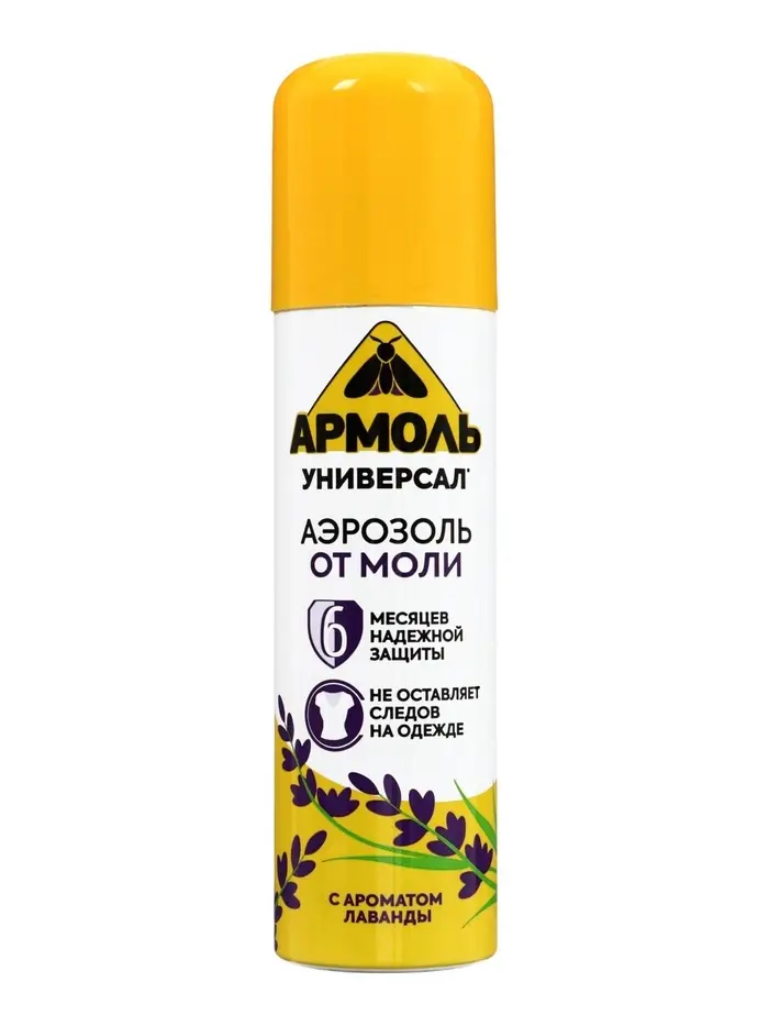 Аэрозоль от моли «Армоль Эксперт» - это эффективное средство для уничтожения платяной моли на всех стадиях развития. Удобный аэрозольный формат позволяет обрабатывать шкафы, ковры, мягкую мебель и другие поверхности, где может обитать моль. Компактного баллона 140 см³ достаточно для точечной обработки или для защиты небольшого гардероба.