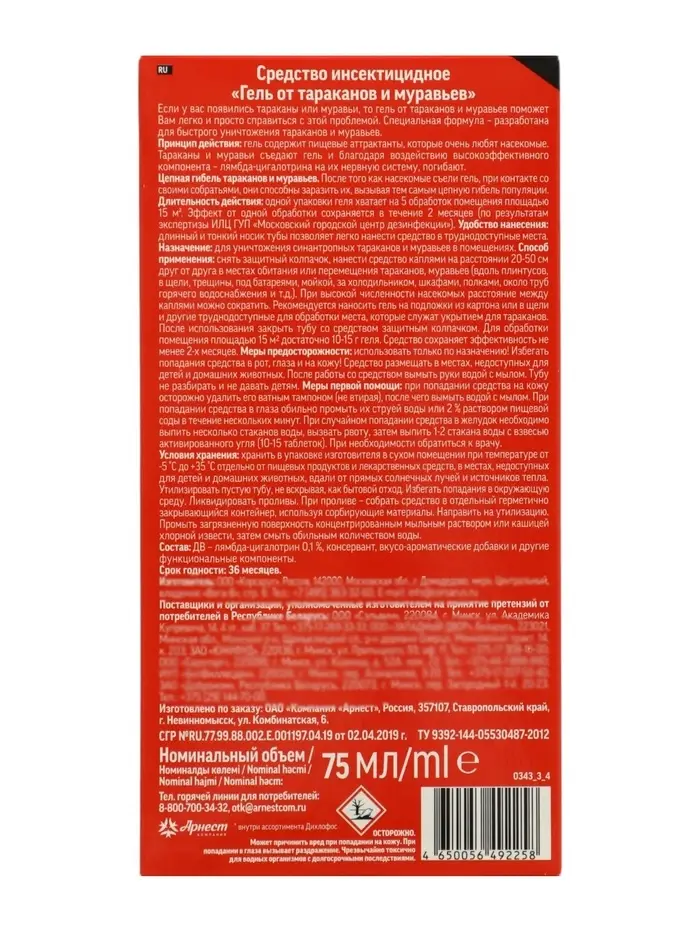 - Эффективен против тараканов и муравьев: препарат одинаково хорошо работает против рыжих и черных тараканов, а также против садовых и домашних муравьев. Достаточно одного геля для решения проблемы с разными вредителями.