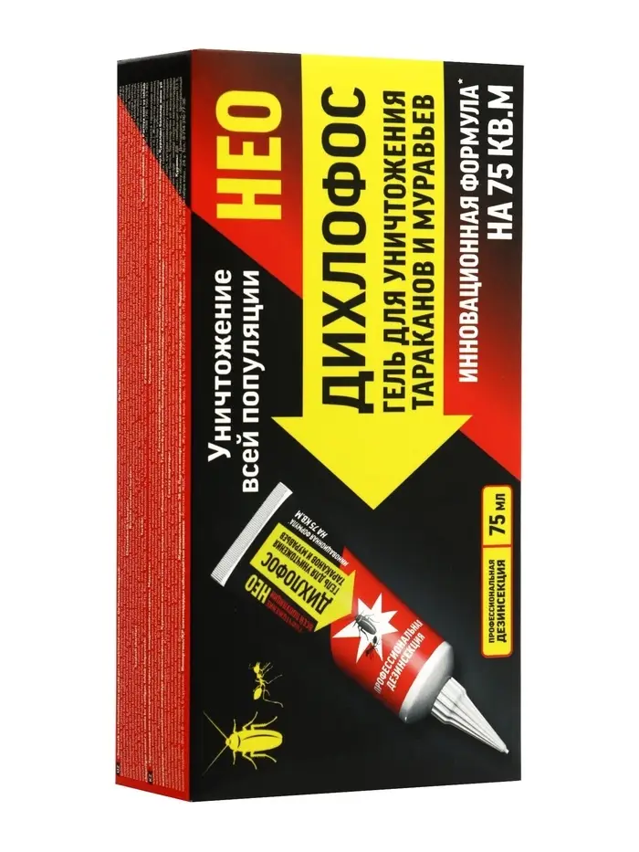 Для полного уничтожения тараканов и муравьев: гель «Дихлофос НЕО» - это надежное решение для тех, кто хочет раз и навсегда избавиться от насекомых в доме или квартире. Наносите гель точечно в местах скопления вредителей и забудьте о проблеме!
