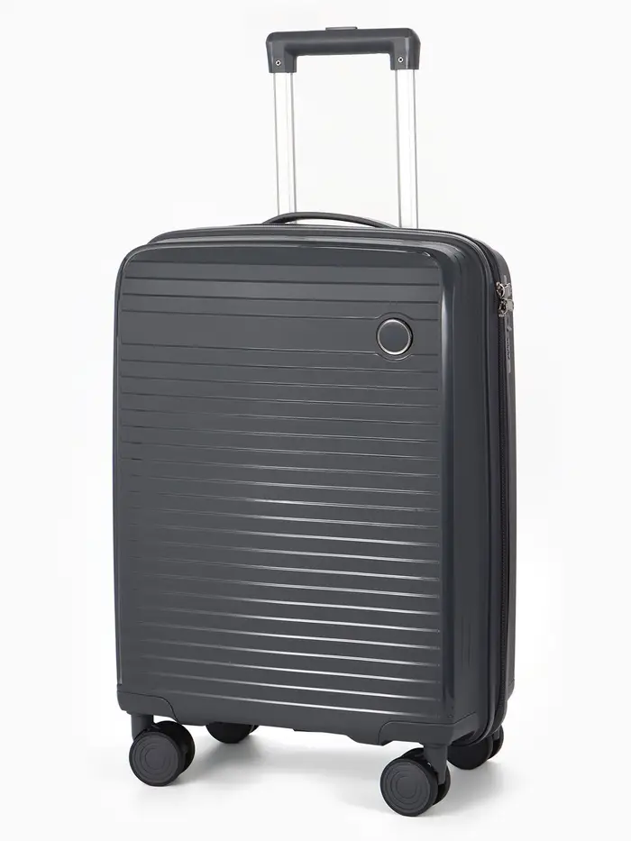 Этот серый чемодан на четырёх колёсах — ваш надёжный спутник для коротких поездок и командировок. Его компактный размер 20 дюймов соответствует стандартам ручной клади большинства авиакомпаний, поэтому вы проходите на посадку без ожидания у стойки регистрации. Прочный корпус из полипропилена защищает вещи от ударов и непогоды, а встроенный кодовый замок обеспечивает сохранность содержимого.