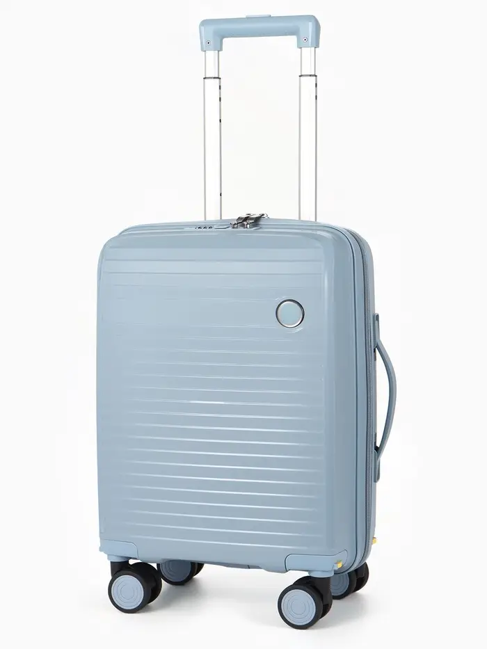 Этот голубой чемодан на съёмных колёсах — ваш надёжный спутник в коротких поездках. Компактный размер 18 дюймов идеально подходит для ручной клади в самолёте, а прочный полипропиленовый корпус защитит вещи от ударов и непогоды. Четыре колёса обеспечивают манёвренность в аэропортах и на вокзалах, а съёмная конструкция позволяет легко заменить их при необходимости.