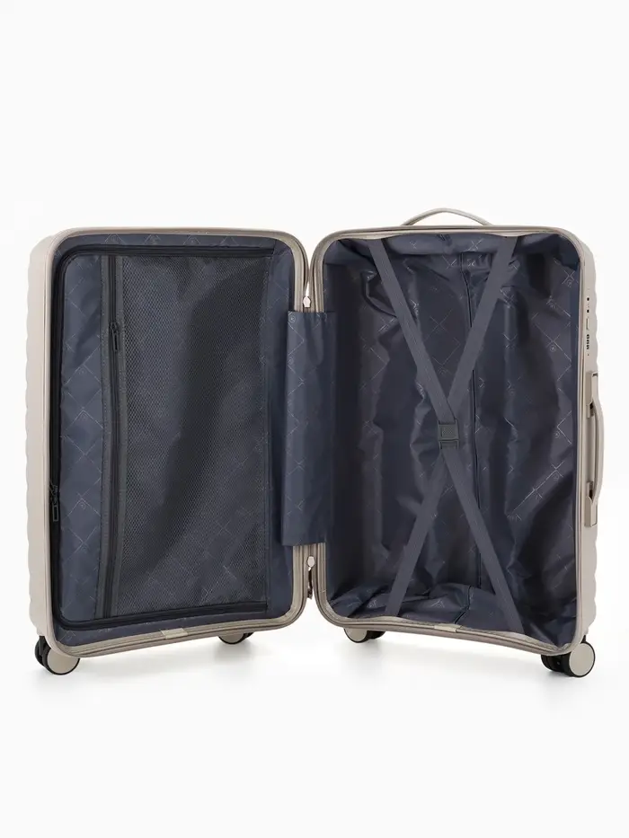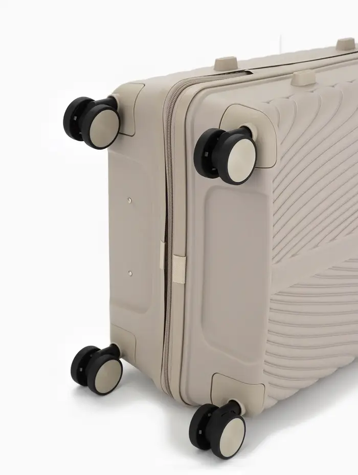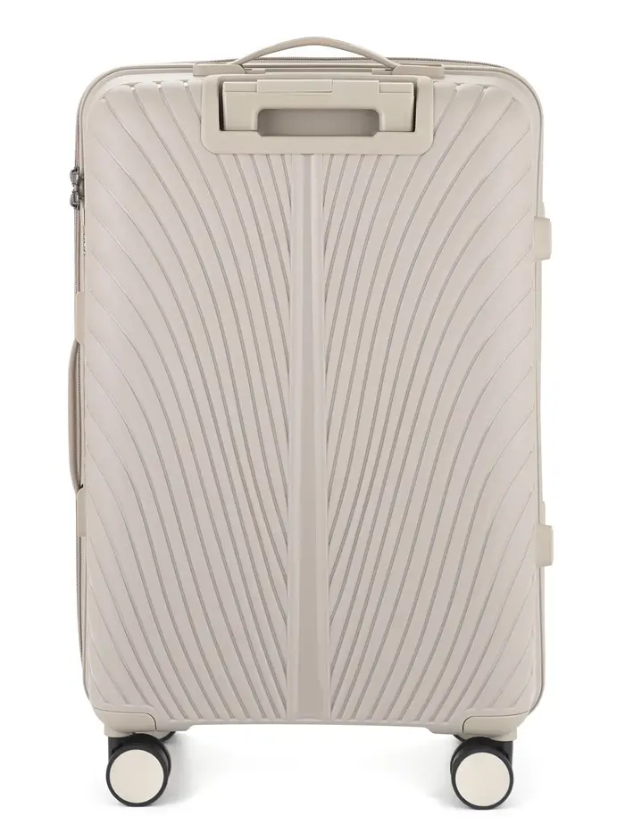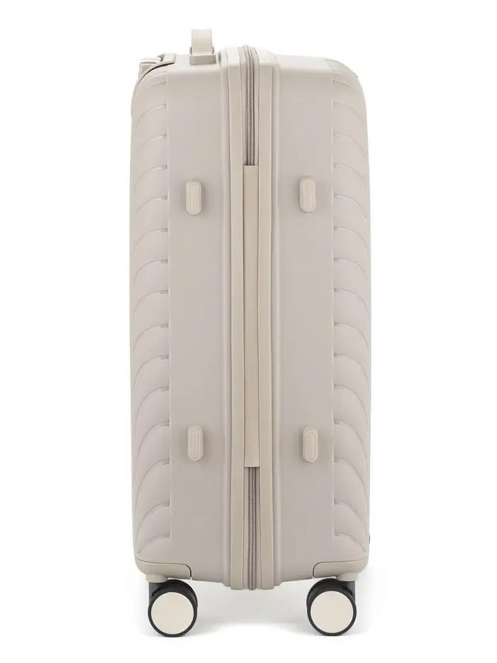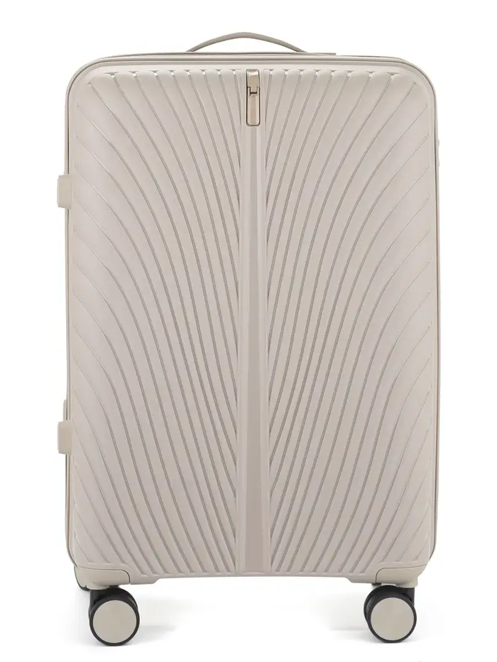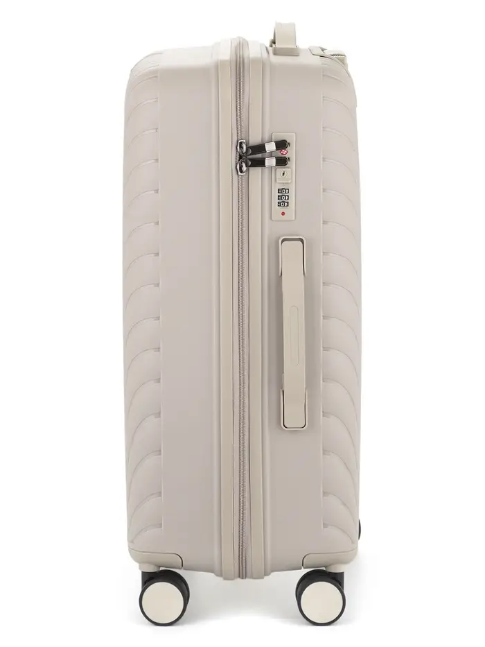 Этот бежевый чемодан на четырёх колёсах — ваш надёжный спутник в любых поездках. Его классический дизайн и нейтральный цвет подойдут каждому, а прочный корпус из полипропилена готов к испытаниям транспортом. Вместительный объём среднего размера 24 дюйма организован рационально, чтобы вещи оставались в порядке. Кодовый замок надёжно защитит содержимое, давая вам спокойствие в пути.