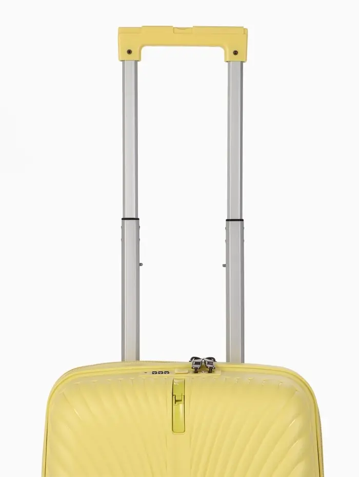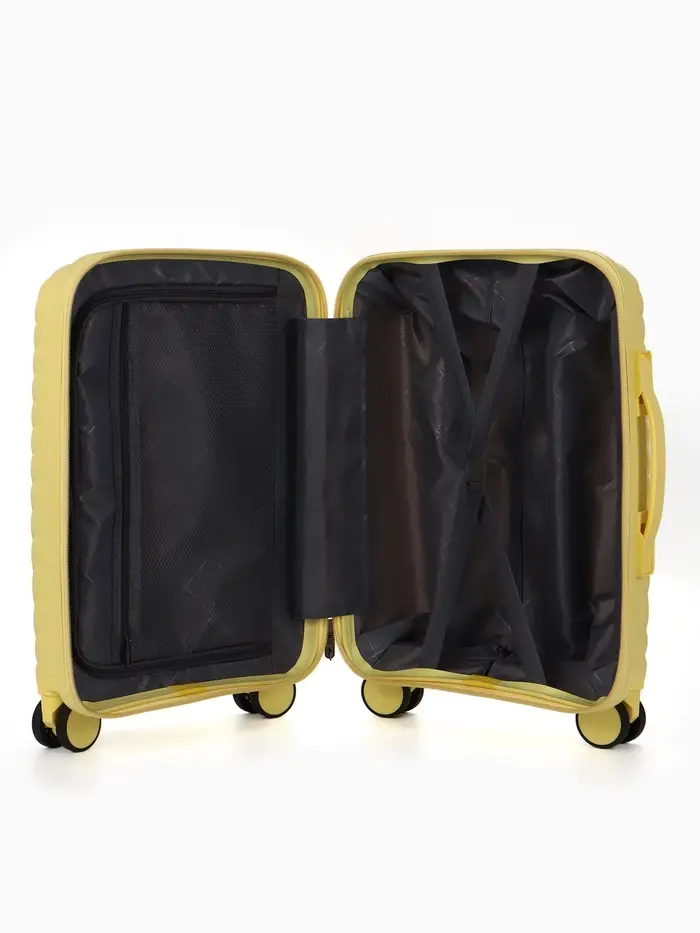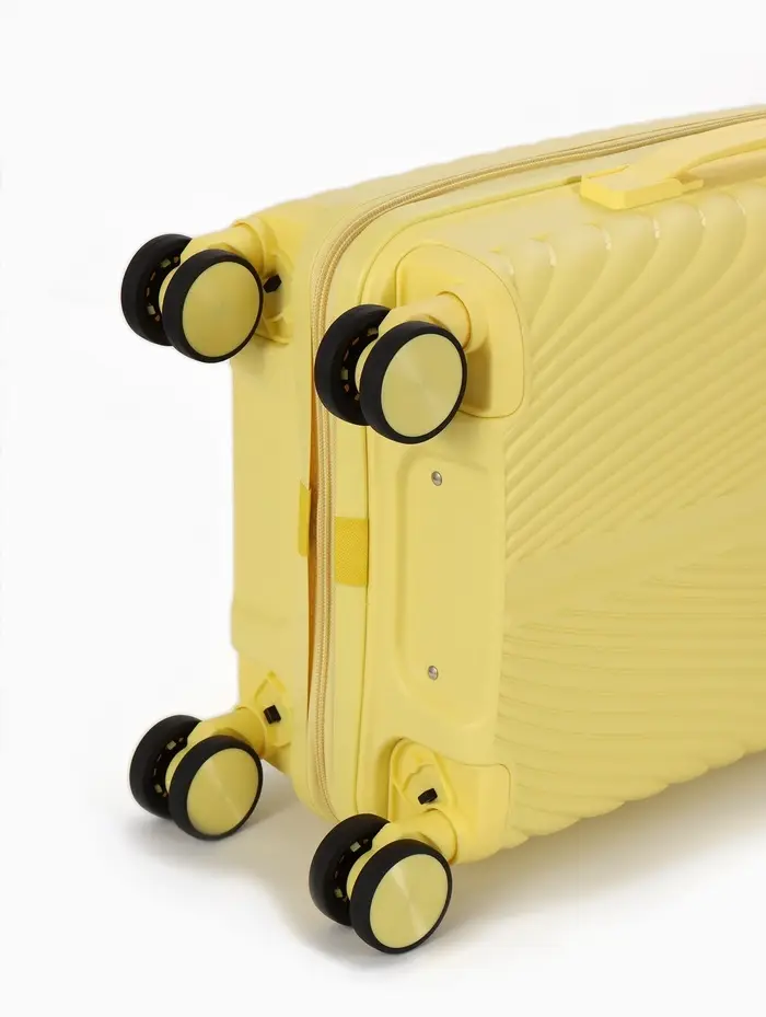 Этот яркий чемодан на съёмных колёсах — ваш надёжный спутник в коротких поездках и командировках. Компактный размер 18 дюймов идеально подходит для ручной клади в самолёте, а жёлтый цвет делает его заметным на ленте транспортёра. Прочный корпус из полипропилена защищает вещи, а четырёхколёсная система с возможностью снять колёса дарит свободу манёвра в тесном пространстве аэропорта или водителю, который предпочитает перевозить багаж в багажнике без царапин. Встроенный кодовый замок обеспечивает спокойствие за сохранность содержимого.