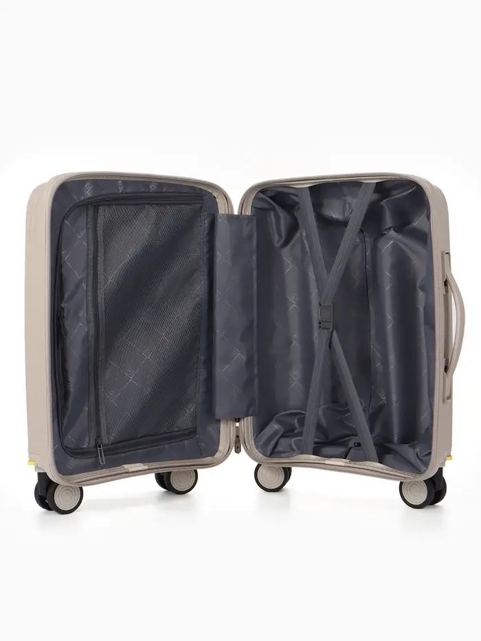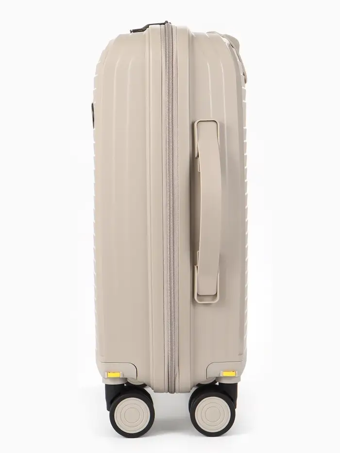 Этот компактный чемодан на съёмных колёсах — ваш надёжный спутник для коротких поездок и выходных. Он создан для тех, кто ценит лёгкость, манёвренность и чёткую организацию пространства. Светло-бежевый оттенок добавляет образу в дороге элегантной сдержанности.