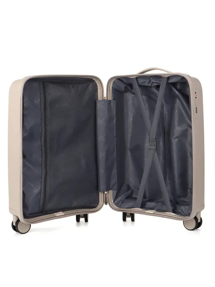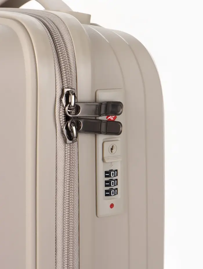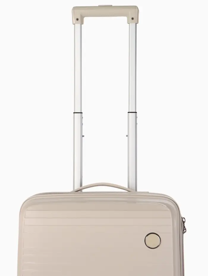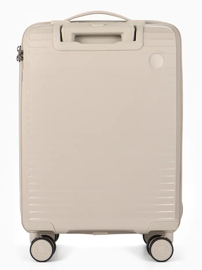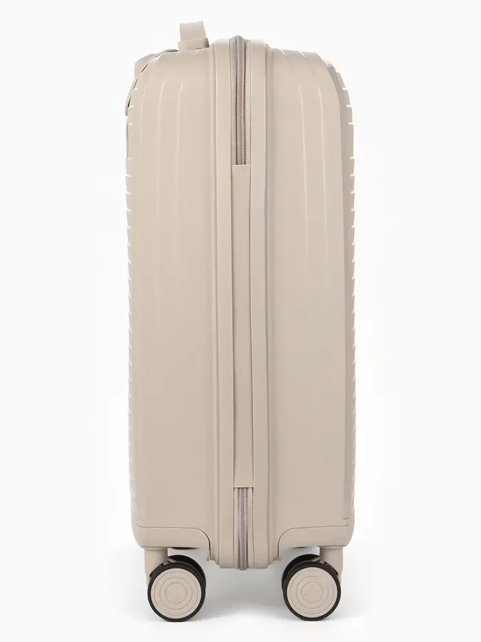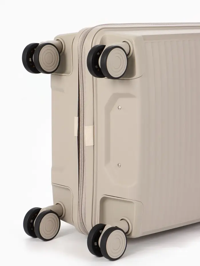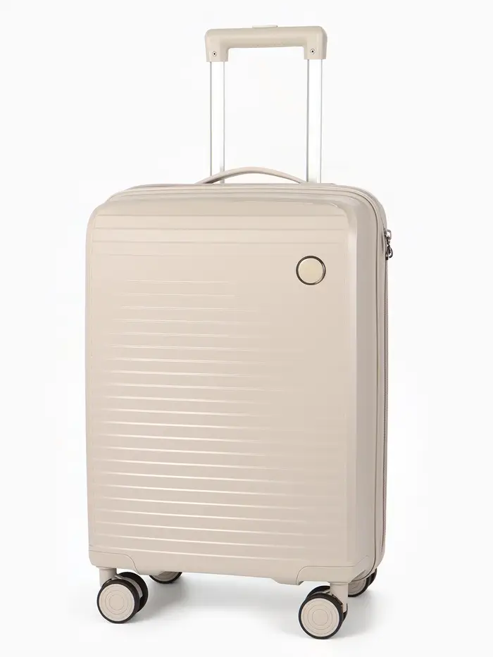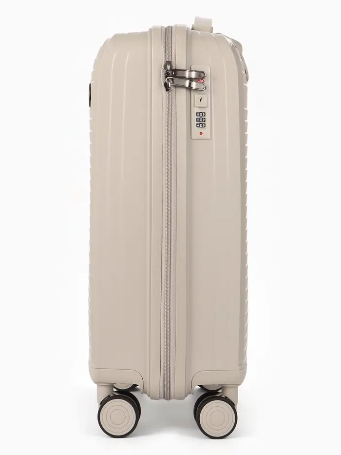 Этот компактный чемодан на колёсах — ваш надёжный спутник в коротких поездках и командировках. Его классический светло-бежевый оттенок сочетается с любым стилем, а прочный корпус из полипропилена защищает вещи от ударов и непогоды. Четырёхколёсная система обеспечивает манёвренность и лёгкость перемещения по перрону или аэропорту.