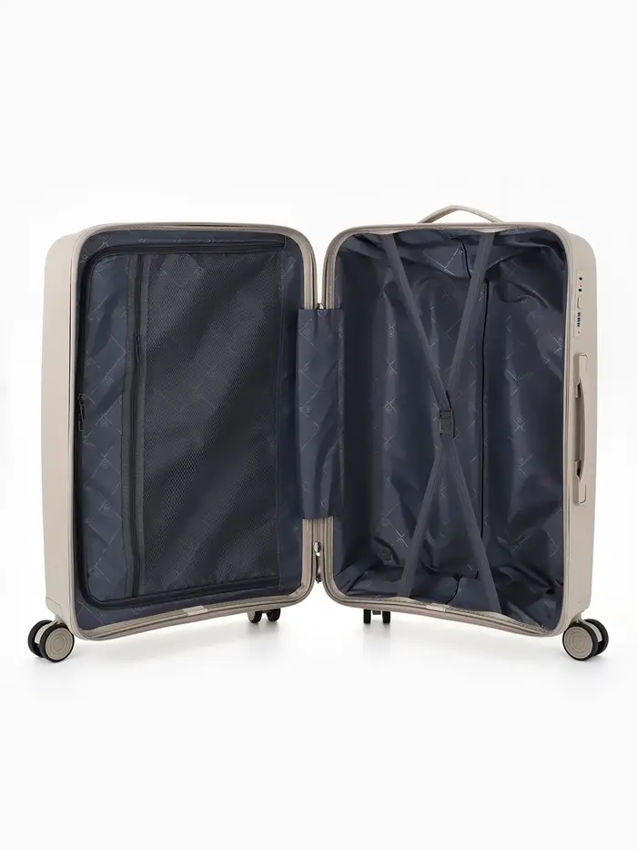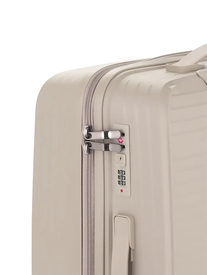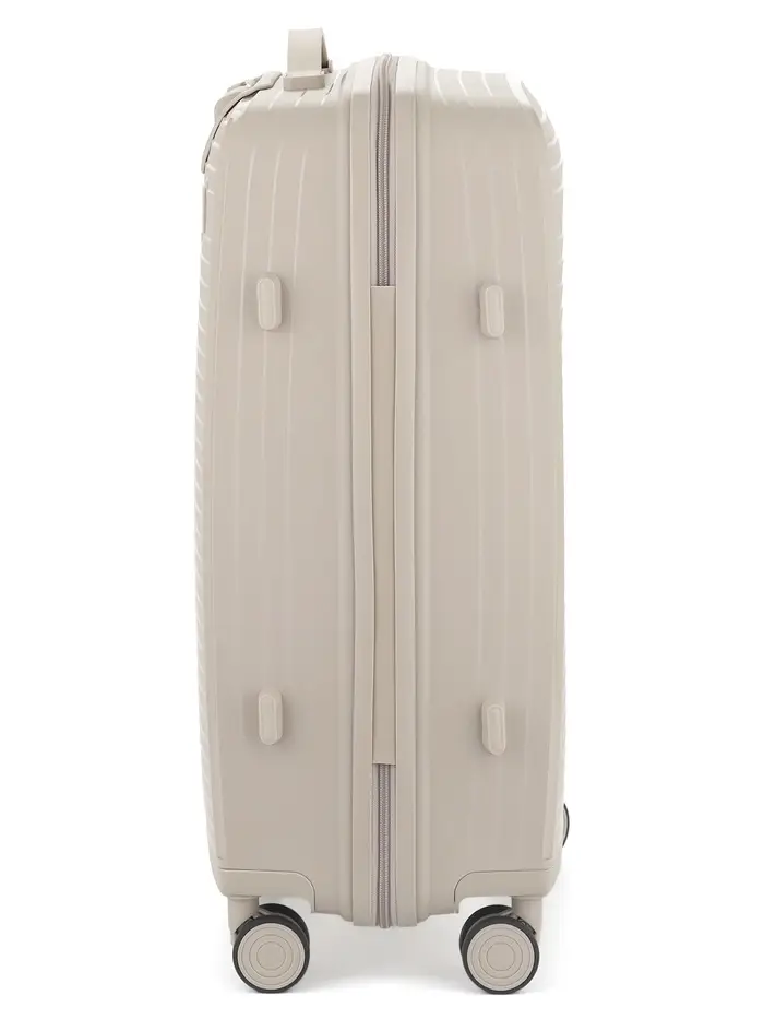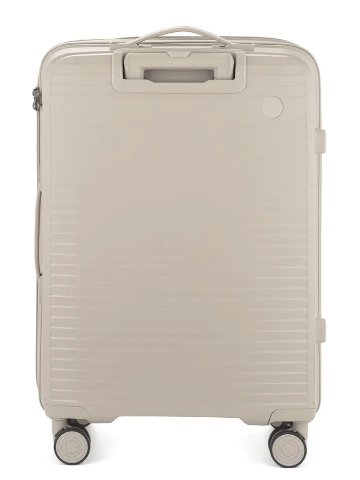 Этот бежевый чемодан на четырёх колёсах — ваш надёжный спутник в любых поездках. Его классический универсальный дизайн и сдержанный светло-бежевый оттенок подходят и мужчинам, и женщинам, легко сочетаясь с любой дорожной экипировкой. Прочный корпус из полипропилена защищает вещи, а манёвренные колёса обеспечивают плавный ход по перронам и залам аэропортов.