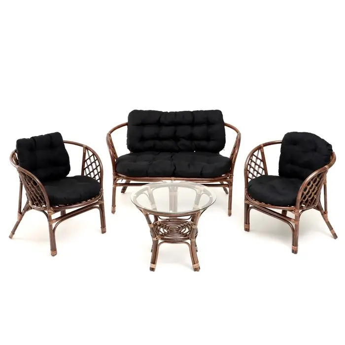 Набор садовой мебели "Bagama": 2 кресла, 1 диван, 1 стол, ротанг тёмный, подушки чёрные