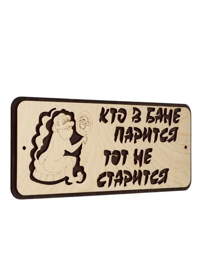 Деревянная табличка для бани «Кто в бане парится, тот не старится» — настенный элемент декора для парной, сауны или зоны отдыха. Натуральная древесина сочетается с банной отделкой, а резная надпись и изображение дополняют оформление пространства.