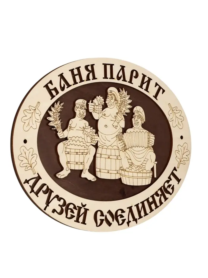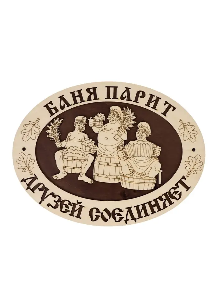 Деревянная табличка для бани «Баня парит — друзей соединяет» — настенный элемент декора для парной, сауны или зоны отдыха. Натуральная древесина сочетается с банной отделкой, а резная надпись и композиция с изображением дружной компании дополняют оформление пространства.