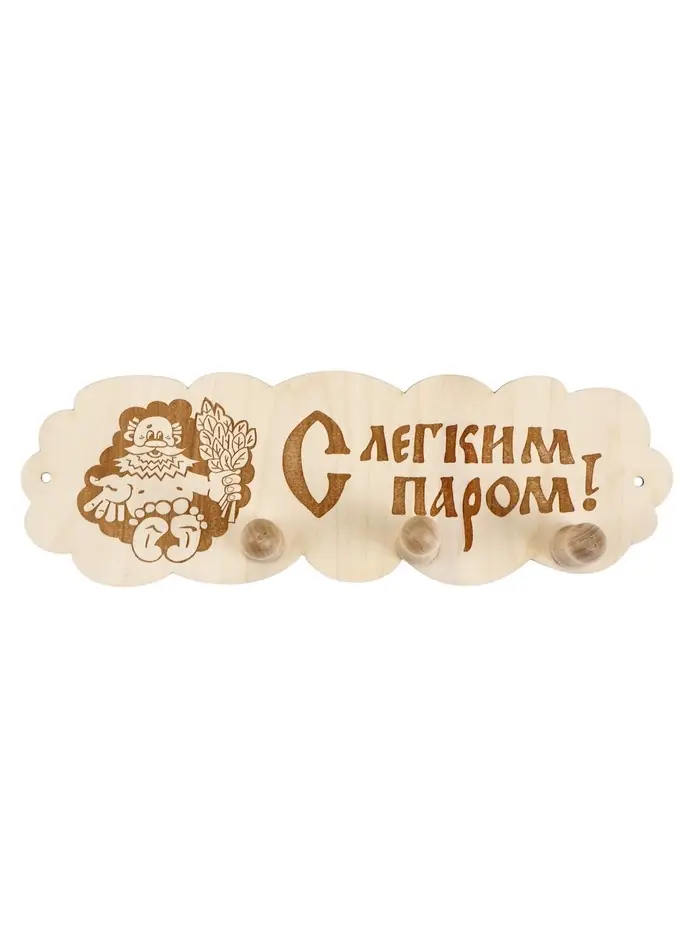 Деревянная табличка с крючками «С лёгким паром» — настенный аксессуар для бани или сауны, совмещающий декор и функциональность. Основа из дерева сочетается с банной отделкой, а фигурная форма и надпись дополняют оформление пространства.
