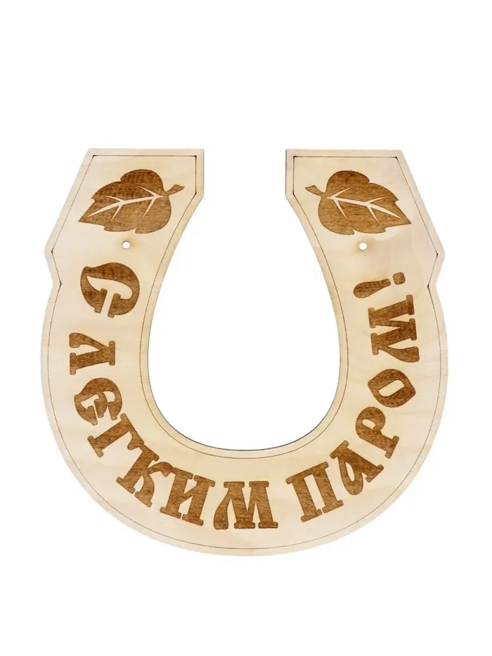 Деревянная табличка для бани «С лёгким паром» в форме подковы — настенный элемент декора для парной, сауны или зоны отдыха. Натуральная древесина сочетается с банной отделкой, а фигурная форма с надписью и декоративными элементами дополняет оформление пространства.