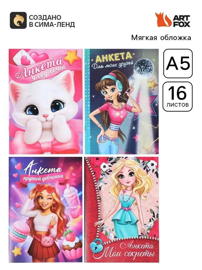 Анкета для девочек, 16 листов «Секретики» МИКС