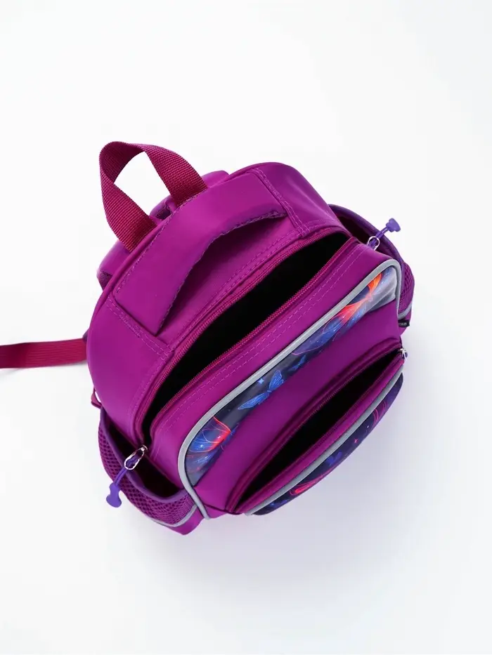 Рюкзак школьный на молнии, с карманами, с принтом, размер 30×13×43 см, сиреневый