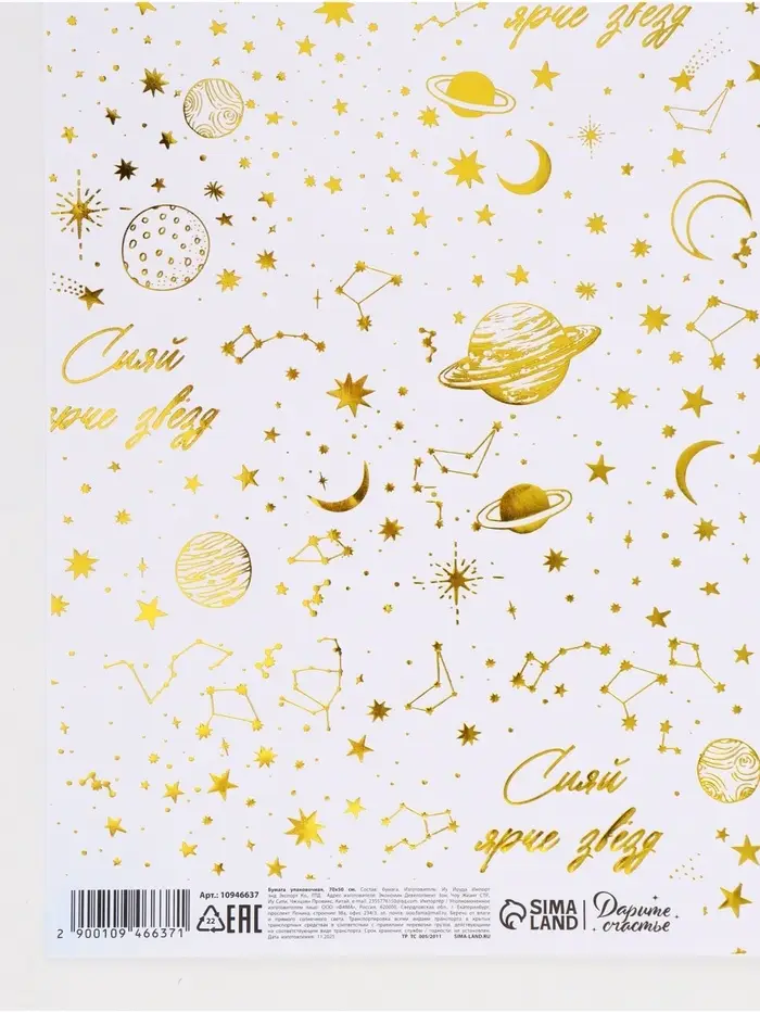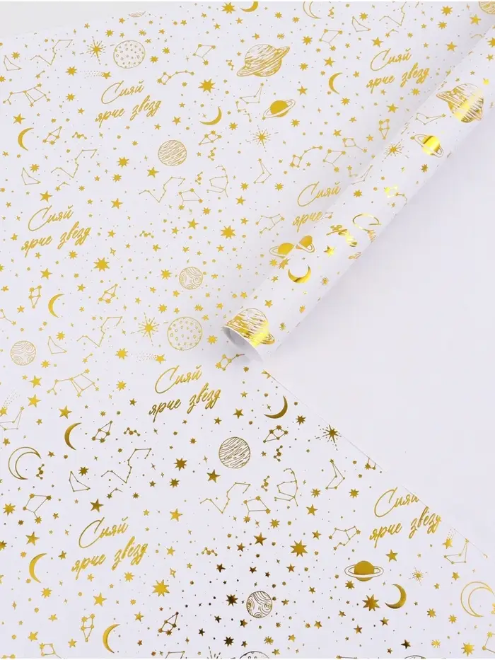 Бумага упаковочная глянцевая «Сияй ярче звезд», тиснение, 50×70 см
