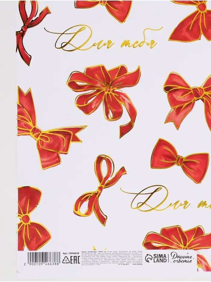 Бумага упаковочная глянцевая «Для тебя», тиснение, 70×100 см