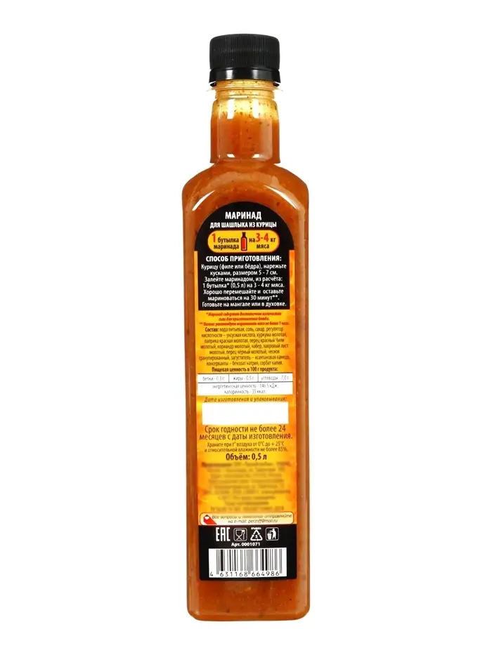 Маринад подходит как для домашнего приготовления, так и для пикника. Удобен в использовании — не требует добавления дополнительных специй.