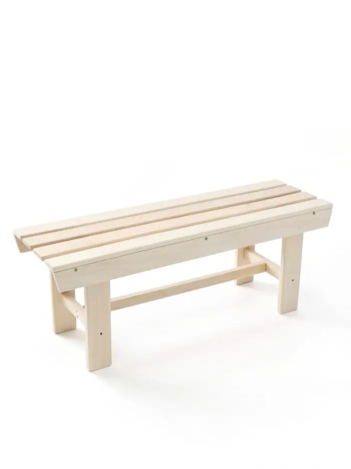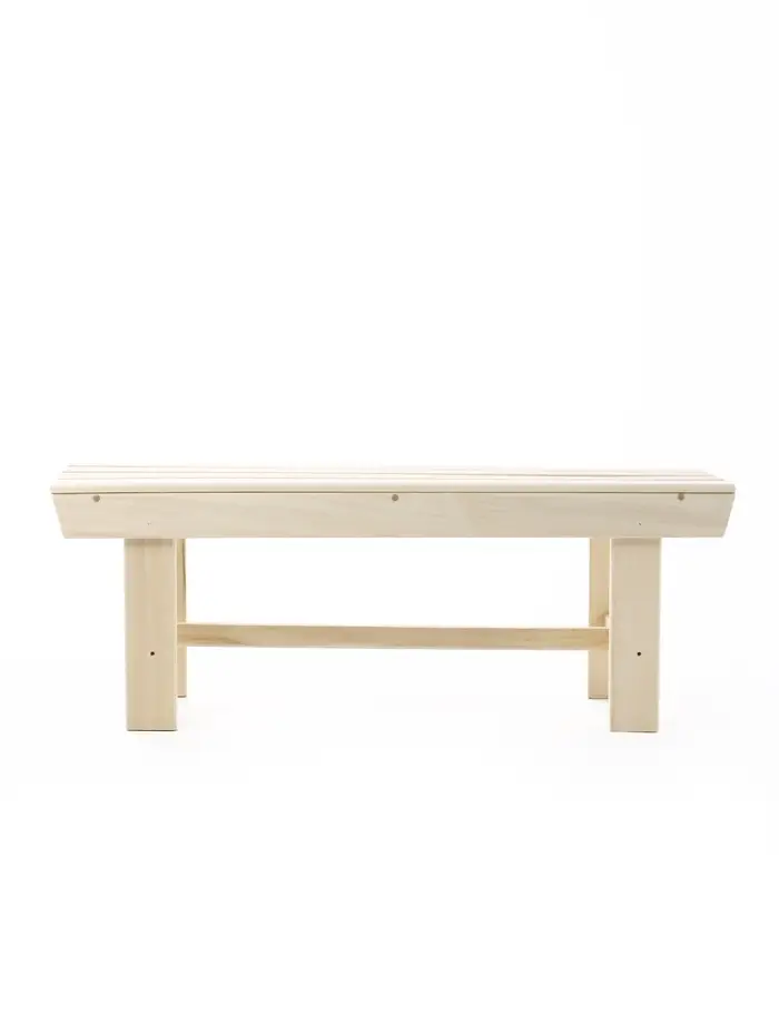 - Продуманные размеры: 120×40×41 см дают достаточно места для сидения, при этом лавка остаётся компактной для размещения в бане или на террасе.