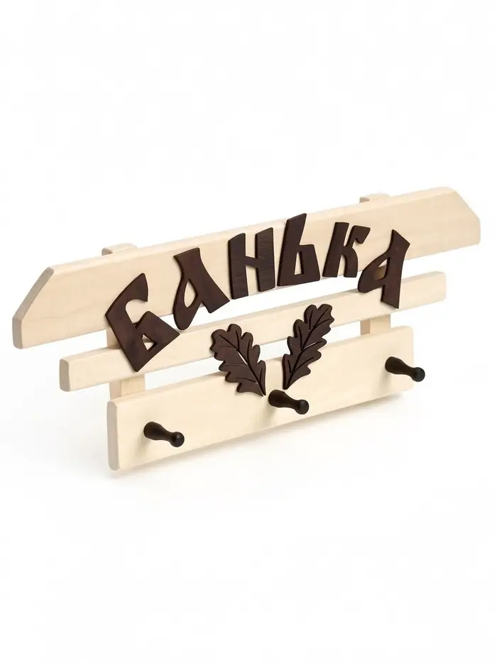 Табличка для бани «Банька», 58×22 см, деревянная, 3 крючка