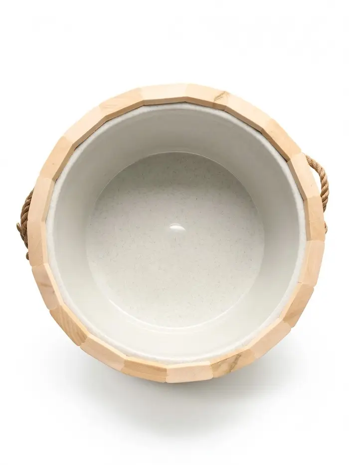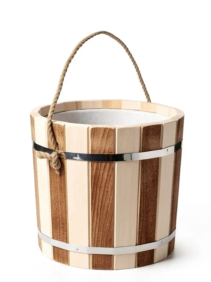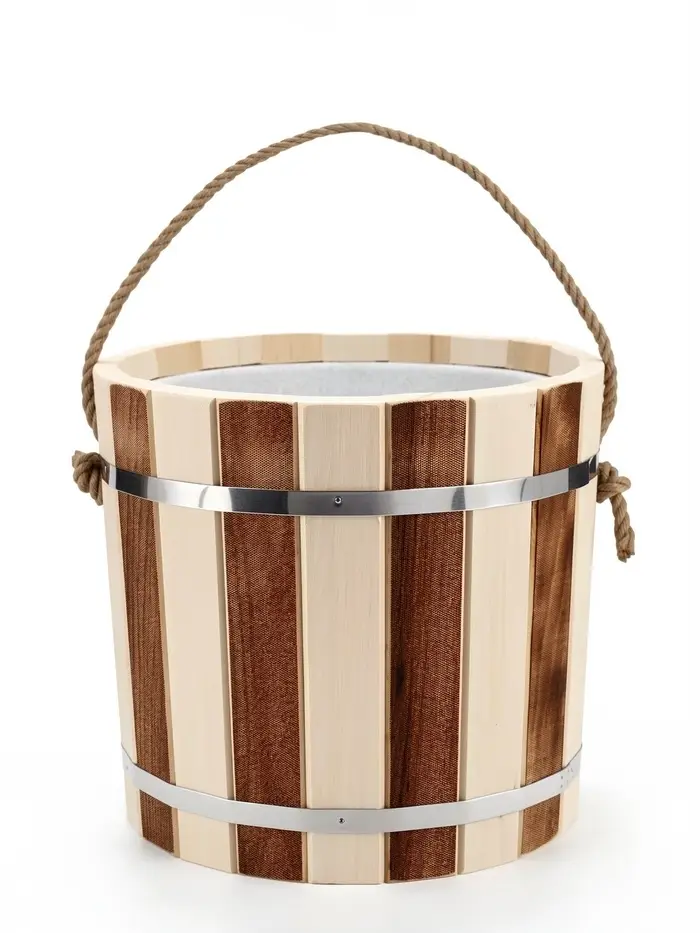 Ведро из липы, 15л, пластиковая вставка, ручка-веревка "Термо"