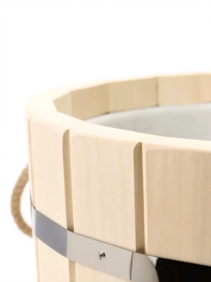 Ведро-запарник объёмом 15 литров позволяет без лишних усилий подготовить веник к парению, чтобы он стал мягким и полностью готовым к использованию.