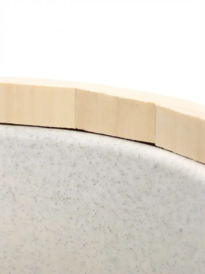 - Пластиковая вставка: удерживает воду внутри и защищает древесину от намокания, что упрощает уход и делает использование более практичным.