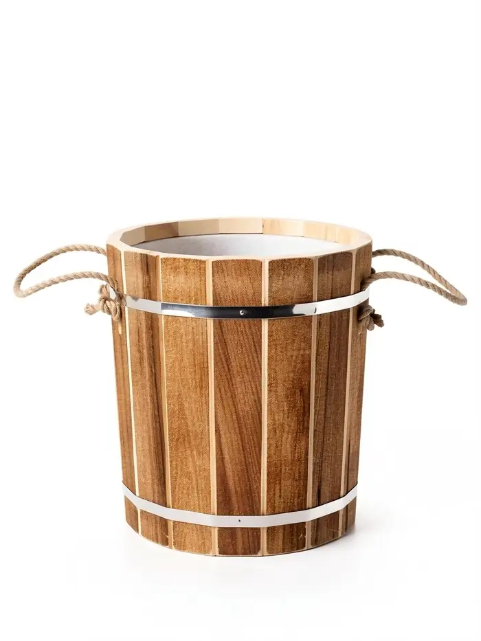 - Верёвочные ручки: удобны для переноски, позволяют легко перемещать ведро в помещении бани или сауны.
