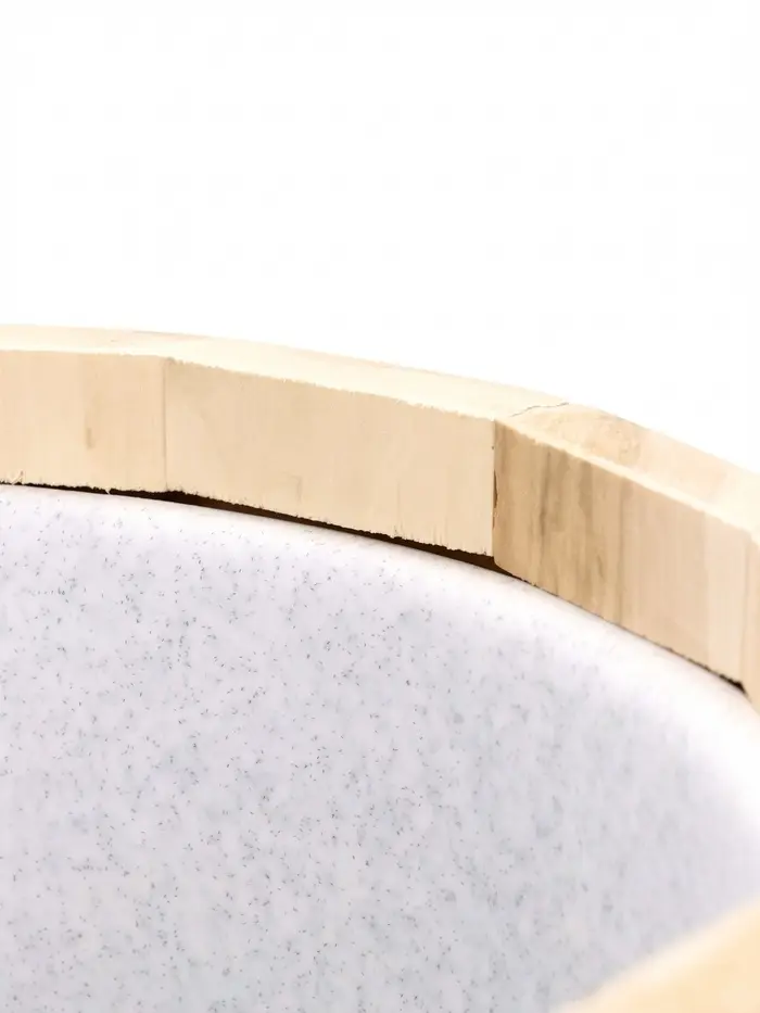 - Пластиковая вставка: защищает внутреннюю часть от влаги, облегчает очистку после использования и помогает поддерживать аккуратное состояние ведра.