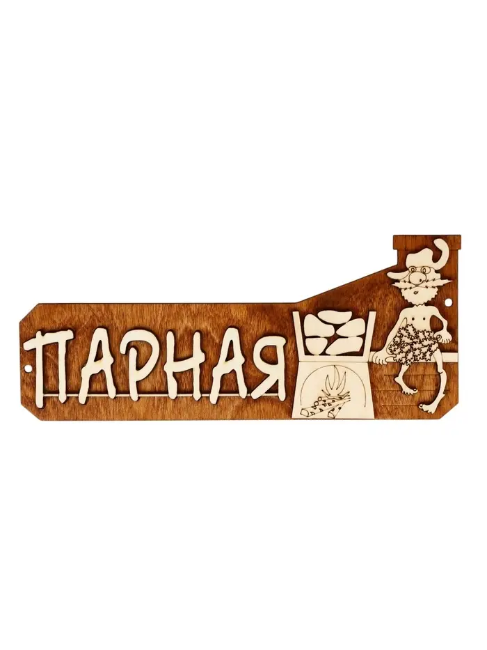 Декоративная табличка с надписью «Парная» дополняет оформление бани и помогает создать цельный визуальный образ пространства. Резной рисунок с банной тематикой и контрастные элементы делают изделие заметным на стене или двери, добавляя уюта и завершённости обстановке.