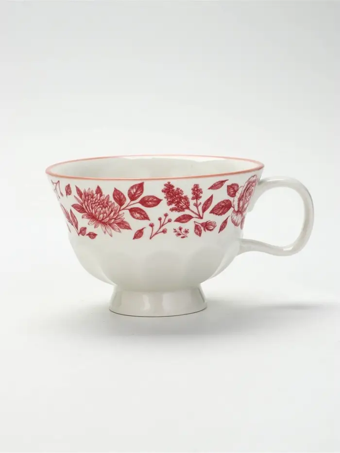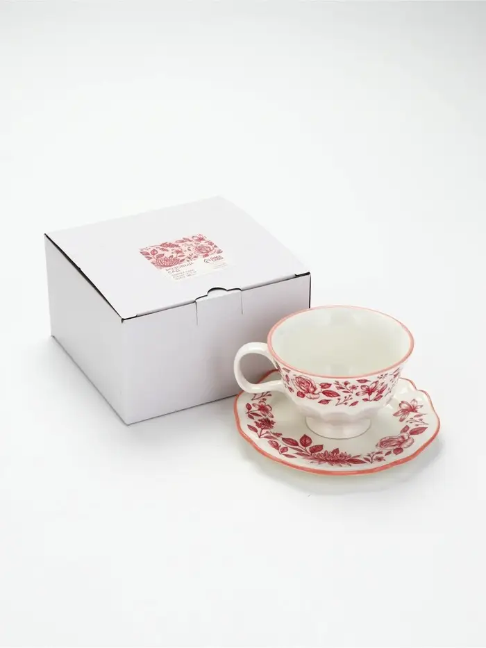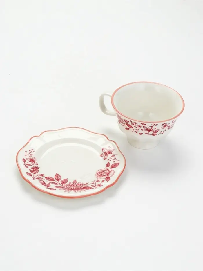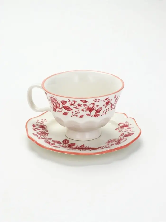 Чайная пара «Розовый сад»: кружка 280 мл, блюдце d=16 см, ручная работа