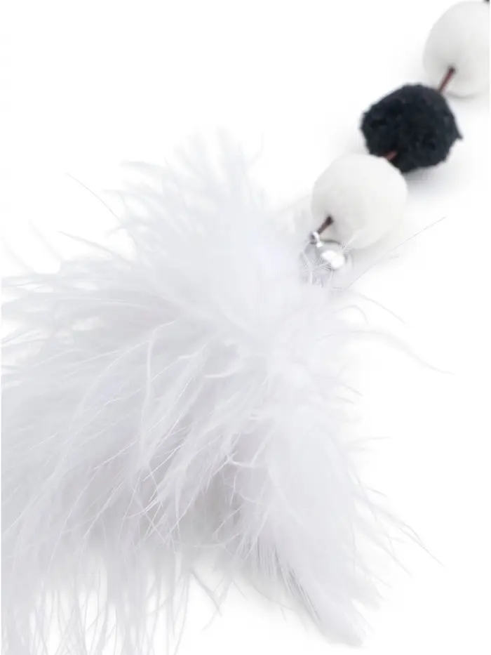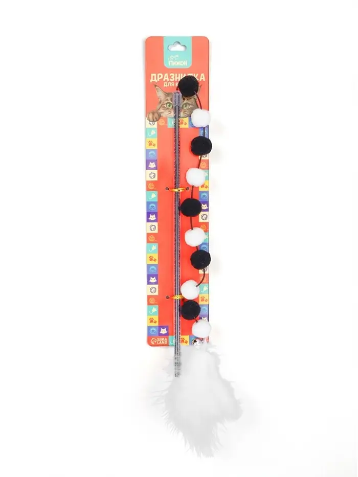 - Перья и шарики — двойное раздражение для хищника: комбинация текстур и движений стимулирует прыжки, ловлю и захват, удовлетворяя природные потребности кошки.