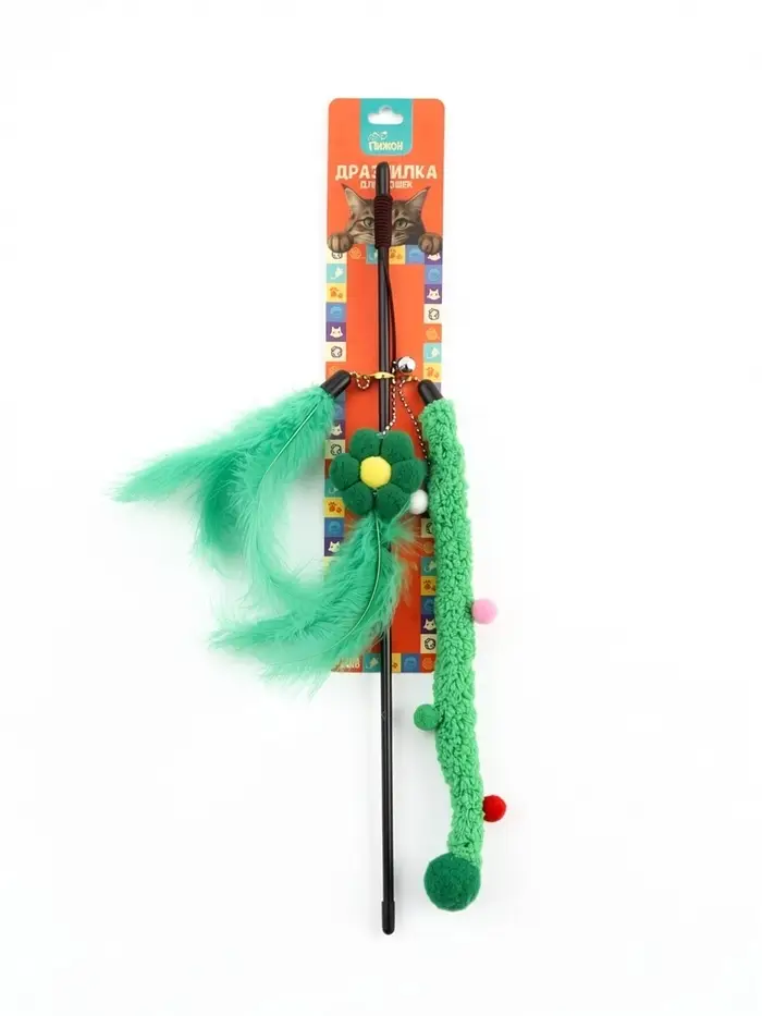 Дразнилка с тремя сменными насадками — универсальная удочка для ежедневных игр с кошкой. Пластиковая ручка с прочной верёвкой позволяет менять насадки: перья или мягкую игрушку. Каждая насадка имитирует разное поведение добычи, поддерживая интерес даже у привередливых кошек.
