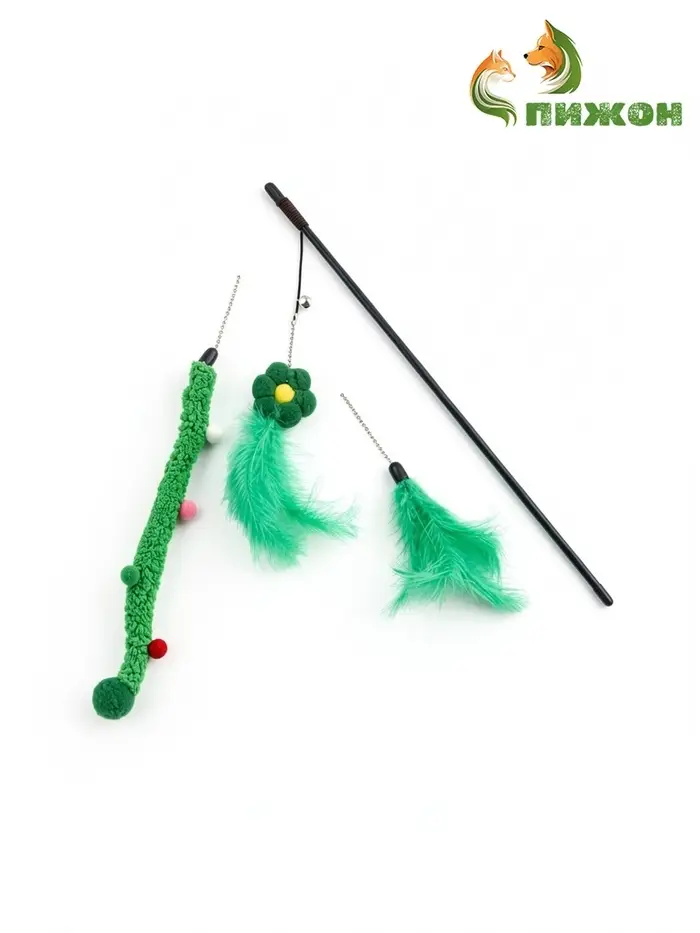 - Три насадки в комплекте — разнообразие без покупок: перья для воздушных движений, мягкая игрушка для захвата зубами. Можно чередовать в зависимости от настроения питомца.